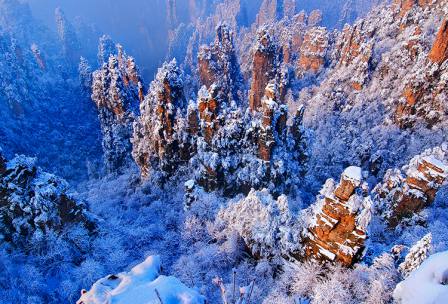 張家界三千奇峰、八百秀水,用“雄、奇、險(xiǎn)、秀、幽”5字來概括,早已得到大眾的公認(rèn)。張家界的山水,稱得上是風(fēng)景山水的經(jīng)典;游張家界,則成為人生的宿愿和幸事。飽覽張家界,可謂四時(shí)皆宜:春天,是大地充滿靈氣的季節(jié),張家界此時(shí)的山水,充滿著生氣,充滿著向往,它的每一座山峰,每一道水溝,都舉著搖曳多姿的花朵,是表示對(duì)游人的歡迎,更是表達(dá)一種生命的意境;夏天,是空氣膨脹欲望的季節(jié),張家界此時(shí)的山水,充滿著遐想,充滿著誘惑,它的一草一木,一枝一葉,都滴瀉著生命的翠綠,裝飾著每一座山峰,蘊(yùn)含著人生的幻想和追求;秋天,是星月喜慶豐收的季節(jié),張家界此時(shí)的山水,一樣地走向深厚,一樣地寫滿沉穩(wěn),它的山山嶺嶺,它的溝溝壑壑,在翠綠的底色中亮出火一樣的紅葉,抒寫著熱情,歌吟著成熟與奔放;冬天,是風(fēng)花雪月般詩(shī)意的季節(jié),張家界此時(shí)的山水,冷峻中透著溫情,蒼茫里飽含著魄力,它的一座座石峰,它的一棵棵巖松,都是一個(gè)個(gè)冰清玉潔的世界,它們都玉樹臨風(fēng)般燃燒著,引發(fā)著游客的激情,而那些冰雪覆蓋的小溪,流水在動(dòng)情地吟唱,就像有情人心中的歌吟,最易撩動(dòng)愛人的衷腸。我愛張家界四季的景色,但我更愛張家界的冬天,我愛在冬天里與張家界的山水對(duì)話,我愛在冬天里到張家界的山水間去暢游,去作一種思想的飛翔! 張家界的冬天并不寒冷,這主要是因?yàn)樗闹芏喔呱剑@里的冬季多為晴朗天氣,故區(qū)域小氣候較為溫暖,暢游張家界無須冒嚴(yán)寒之苦,又可避開歷酷暑之難。即使是雨雪天氣,因?yàn)榫皡^(qū)是一個(gè)高出的整體平臺(tái),小地形則是一塊盆地,所有的景觀就好比一個(gè)放大的盆景,所以在游歷觀賞的行程中,并無寒氣逼人、冷酷加身的感覺。一旦遇上陰雨天氣,景區(qū)因海拔較高,山地氣候又特別明顯,放眼望去,枝枝葉葉便都成了水晶般的世界,精靈奇巧的霧凇千姿百態(tài),笨拙憨厚的灌木清純天成。若是有雪降臨,不管大小,山上立即便會(huì)是一個(gè)白雪皚皚的世界,恰似翡翠盤中堆砌著白玉,那些巖壁上的枯枝古樹,此時(shí)又煥發(fā)青春,讓人不由得想起兩句古詩(shī):“春來苔作葉,冬至雪為花。”我曾陪《羊城晚報(bào)》的一位朋友冬游張家界,她興致極高地滿山里跑,她說:“此山此景,人生頭一回遭遇,可望而不可求,遺憾的是沒有看到雪境里的張家界。”真是老天作美。第二天,我們?cè)谏缴献咧咧炜毡泔h起了雪花,頃刻之間,便是一個(gè)雪花飛舞的世界,大地上石峰上樹上身上的雪花,就像火苗一樣點(diǎn)燃了朋友的激情,她情不自禁地面對(duì)著山野吟哦起來——親切而新鮮的雪花,落下來,在夢(mèng)幻深處,在心靈深處,就像飄落的雪白的火焰,溫暖我人生的境界點(diǎn)燃我生命的激情……雪花落下來,落滿大地、石峰和樹冠豐腴著山峰、溝壑和想象為詩(shī)意和行程增加了厚度,雪清新,溫暖,純潔,冷冽它是自然的語言,火辣辣的語氣中帶著熱情,還有看不見面的堅(jiān)硬和銳利…… 作為一個(gè)南方的朋友,見到如此美妙的雪的世界,她的激動(dòng)和驚喜,完全是我意料中的事;而讓我驚奇的是從不作詩(shī)的她,竟然意隨興致的吟唱出如此語意雙佳的詩(shī)作來。 雪中游張家界,你無需為安危著想,景區(qū)的工作人員,無論何時(shí)何地,都是游客的保護(hù)神。在我的記憶中,深深地記得2000年正月初一的那天,我與攝影界的朋友游張家界,每到一處,各種接待工作都井然有序,清路工人硬是在一尺余厚的積雪上,清出了通往每一個(gè)景區(qū)景點(diǎn)的道路,每一處易出事故的地方,都有工作人員守護(hù)。在天子山頂,我們遇到一群臺(tái)灣游客,他們高興地指著冰天雪地的景區(qū)景點(diǎn)說:“張家界山美水美人更美,張家界的雪景則是美上加美,每一座石峰都冰清玉潔,每一棵樹都玉樹臨風(fēng),真是一個(gè)美妙的雪世界啊!” 張家界的森林覆蓋率達(dá)99.7%以上,植物科目種類比整個(gè)歐洲大地還多。因此,冬游張家界,滿眼里仍然是綠色的世界,這就是它與北方景觀的區(qū)別。即使是冰天雪地,那臨風(fēng)玉樹,那挺立的石峰,透過冰雪,仍然會(huì)展現(xiàn)出綠色,就像一個(gè)翡翠的世界。置身于這樣的景致里,使你的感覺不寒不躁,如早春二月,心如春芽。這時(shí),你心隨景移,興隨景起,你會(huì)由衷地感嘆:“這世界多么美妙,真是個(gè)賞雪景的勝地。”? 冬天去張家界賞雪景,游客不用自己為交通食宿多操心。如今去張家界,公路、鐵路、航路三位一體,十分方便,市內(nèi)去景區(qū)也已修成了高等級(jí)公路,返往暢通無阻。旅游通行是景區(qū)旅游,市內(nèi)住宿,各類檔次的賓館任由選擇。盡管景區(qū)山高溝深,路陡程長(zhǎng),但游客無需為勞累擔(dān)憂,景區(qū)內(nèi)已建成兩條上山索道和一條上山升降梯,上黃石寨、天子山、袁家界等核心景區(qū),只是一瞬間的事情。即使在山上走累了,隨處可以叫一架滑竿,轎夫都是些訓(xùn)練有素的精壯青年,他們可以抬著你慢悠悠地一邊瀏覽著雪中的景致,還會(huì)一邊為你講些民俗或是一些山中的故事。他們會(huì)為你噓寒問暖,寧肯自己多吃些苦,多受些累,他們也會(huì)做到讓游客舒心滿意。這時(shí),你還不心曠神怡么?你渾